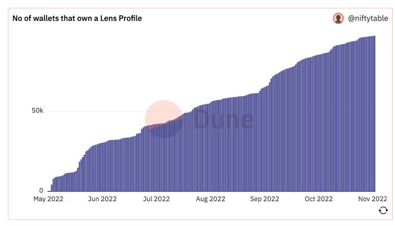 The illustration down below demonstrates the stark increase in wallets that have created a Lens profile.
