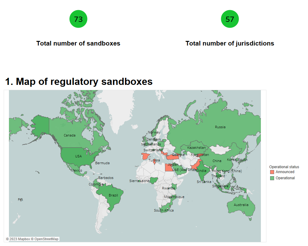 World Bank data from late 2020 stipulated there were 73 regulatory sandboxes covering 57 jurisdictions. Sandboxes are a relatively new concept with 56% of the fintech-related sandboxes created between 2018 and 2019. We can extrapolate this trend to surmise the number of active sandboxes is now significantly higher in 2023. Blockchain and crypto often fit under a wider fintech mandate.