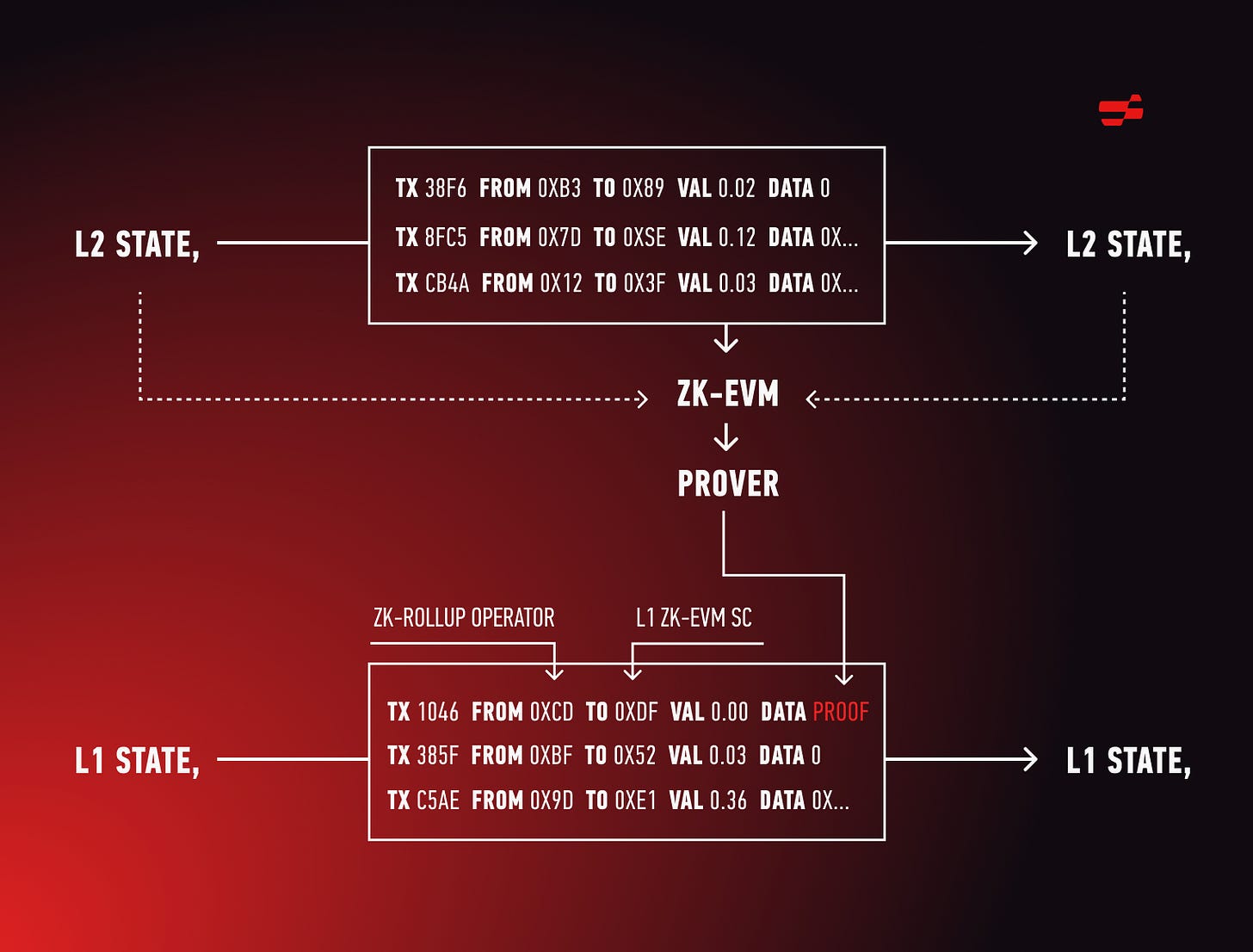 Polygon’s zkEVM also features a different data structure, they use a special merkle tree where each leaf only stores a single property (i.e. balance / nonce / codeHash / storageRoot) and uses a different hash function called Poseidon. They also utilize 256 bits of memory instead of 8 bits, which slightly alters the logic for querying memory. Lastly, they introduce a ZK assembly compiler (zkASM) to interpret transactions. You can find out more about Polygon zkEVM’s difference here.