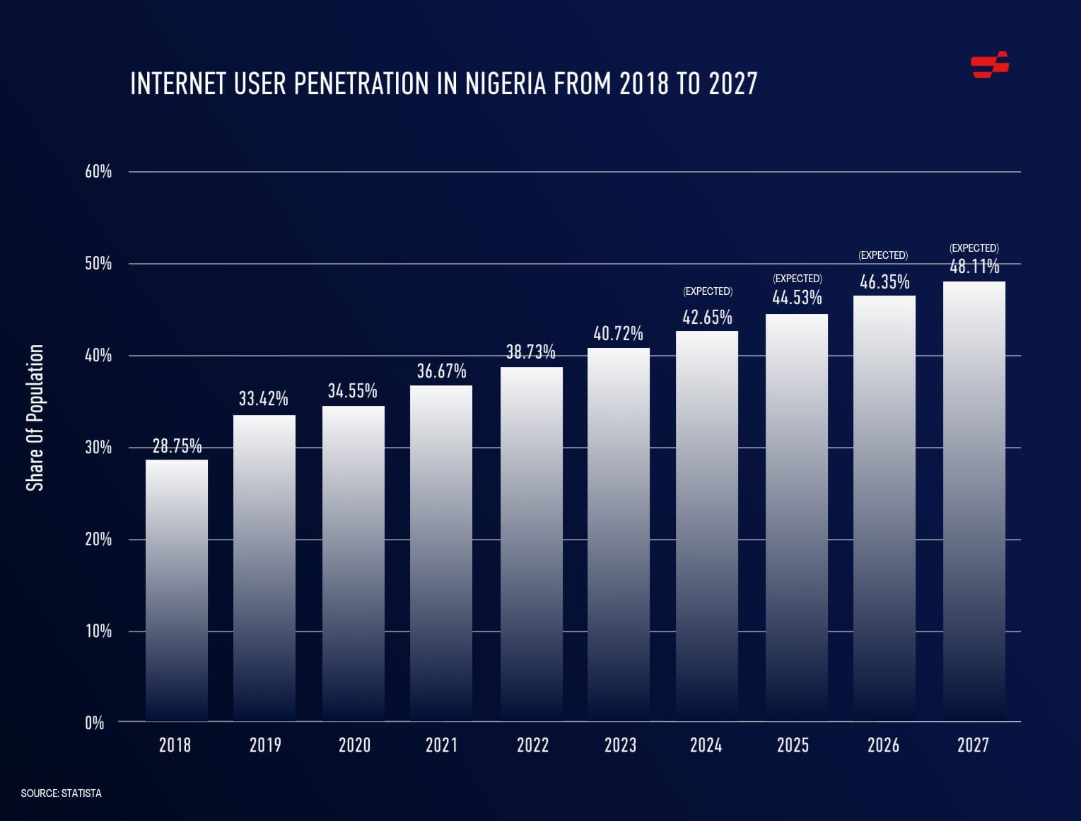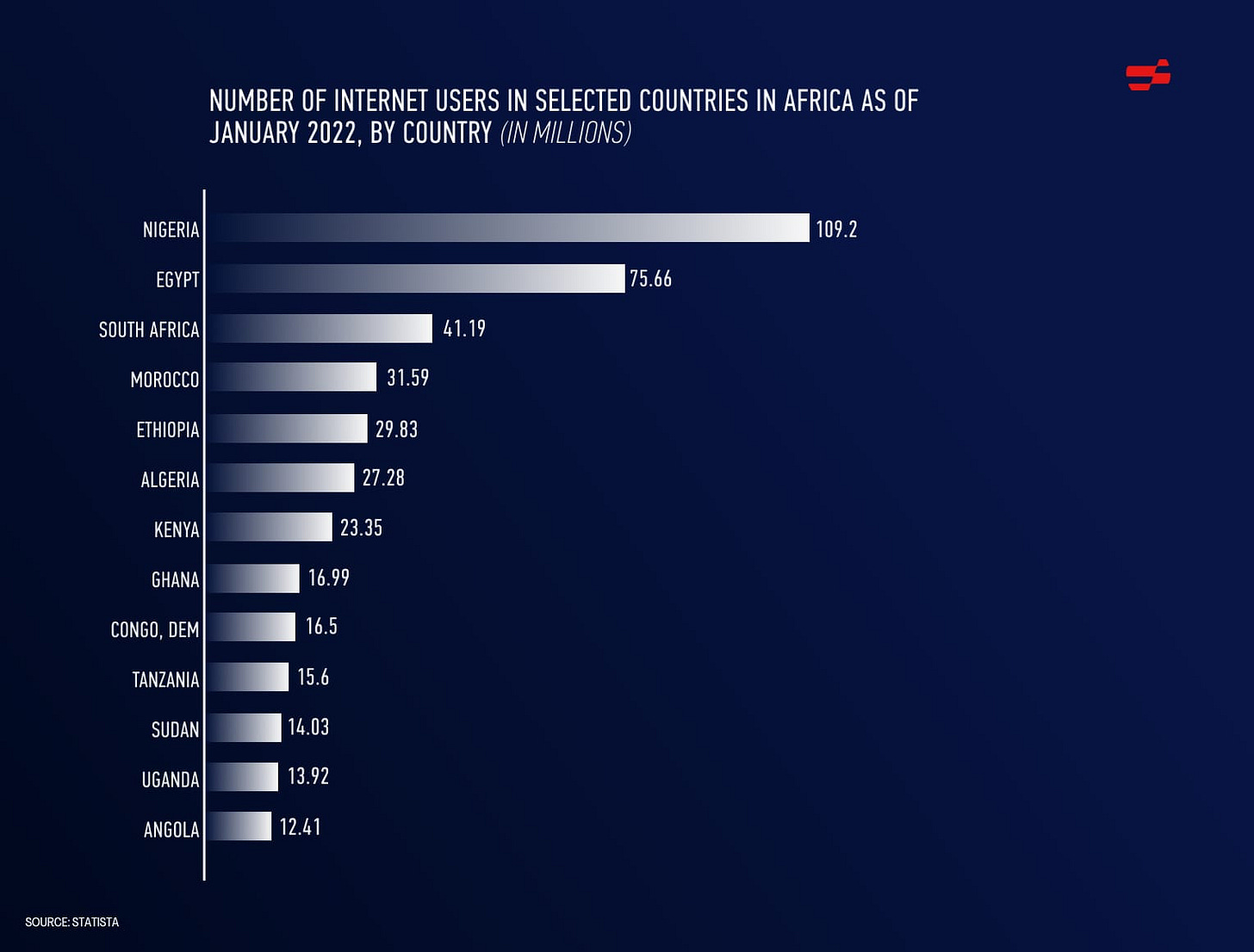 The Nigerian gaming market presents several opportunities for expansion, with the increasing internet and mobile penetration being a key factor. As of January 2022, Nigeria had the highest number of internet users in Africa, estimated at 109 million people. This has led to a surge in the number of gamers, making mobile gaming the most popular gaming platform in Nigeria, with a market size of $122 million in 2020.