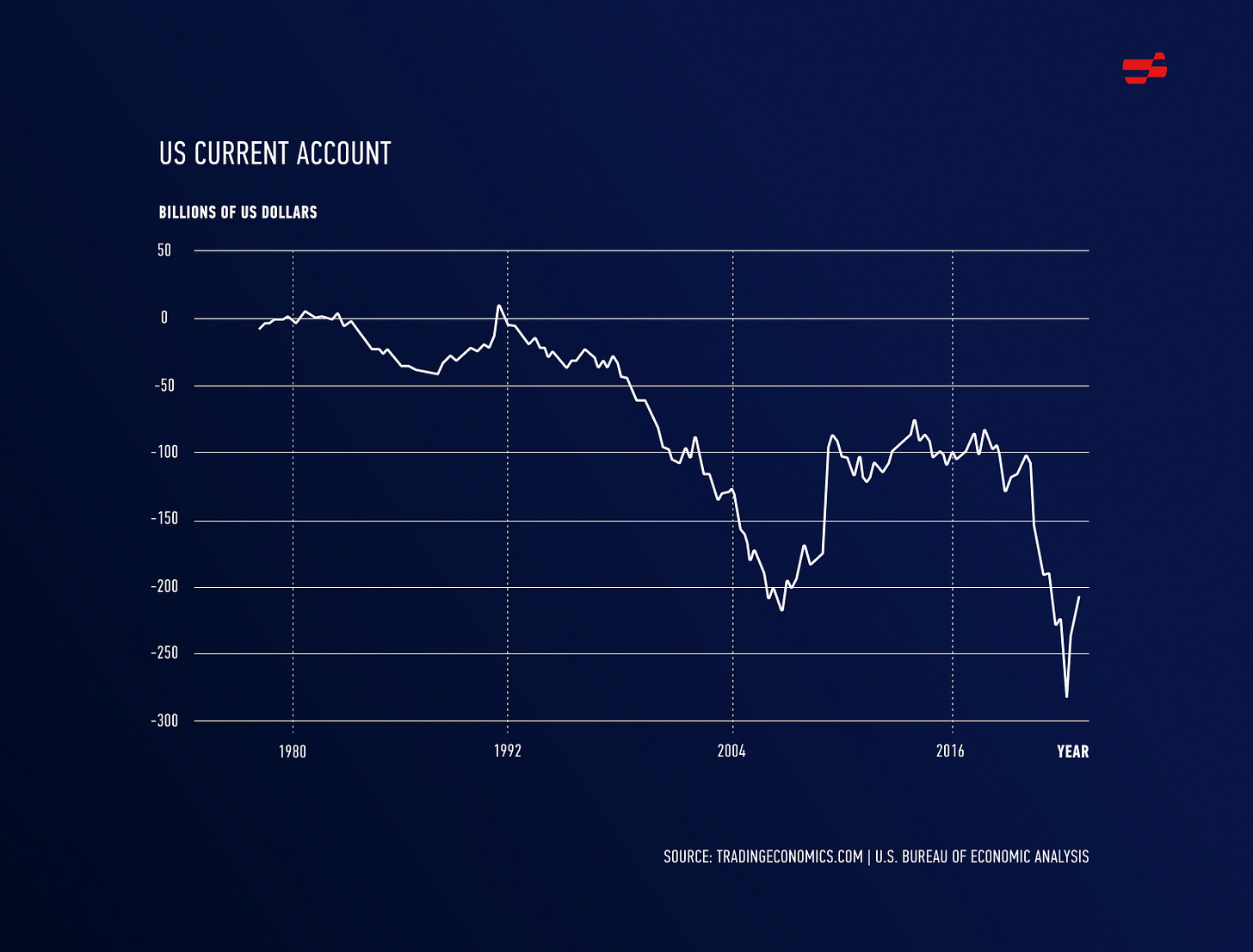 Much of the world is powered by the US Dollar as the United States is able to run current account deficits for the past five decades, meaning the US has been importing more value than it has been exporting. What this structurally means is that the US has demand for goods that it does not produce at home so it must export dollars in exchange for the import of goods.