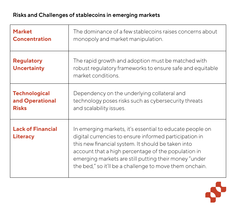 The report highlights the significant adoption of stablecoins in emerging markets, where they are increasingly viewed as viable solutions to economic volatility, offering stability, lower transaction costs, and financial inclusion. The potential impact of stablecoins in these regions is profound, providing a reliable alternative to unstable local currencies and facilitating greater participation in the global digital economy. The report also addresses the regulatory landscape, which is evolving as various nations and global organizations seek to establish frameworks that balance innovation with financial safety.