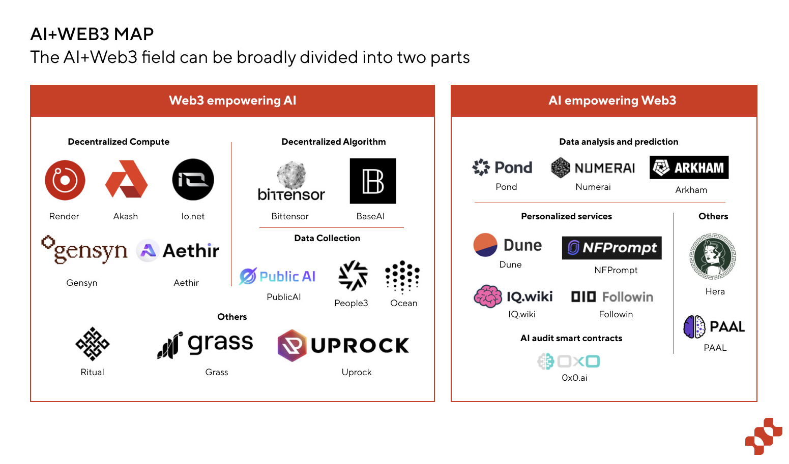 The integration of AI and Web3 projects primarily focuses on two major aspects: leveraging blockchain technology to enhance AI performance and utilizing AI technology to improve Web3 projects.