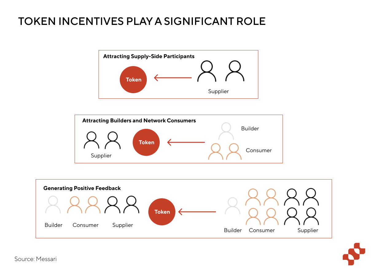The key aspect is the token incentive mechanism, which first attracts suppliers and then users, allowing the project to bootstrap and operate effectively. In this cycle, the supply side receives valuable token rewards, while the demand side benefits from more affordable and higher-quality services. As the token price rises, more participants and speculators are attracted, creating value capture.